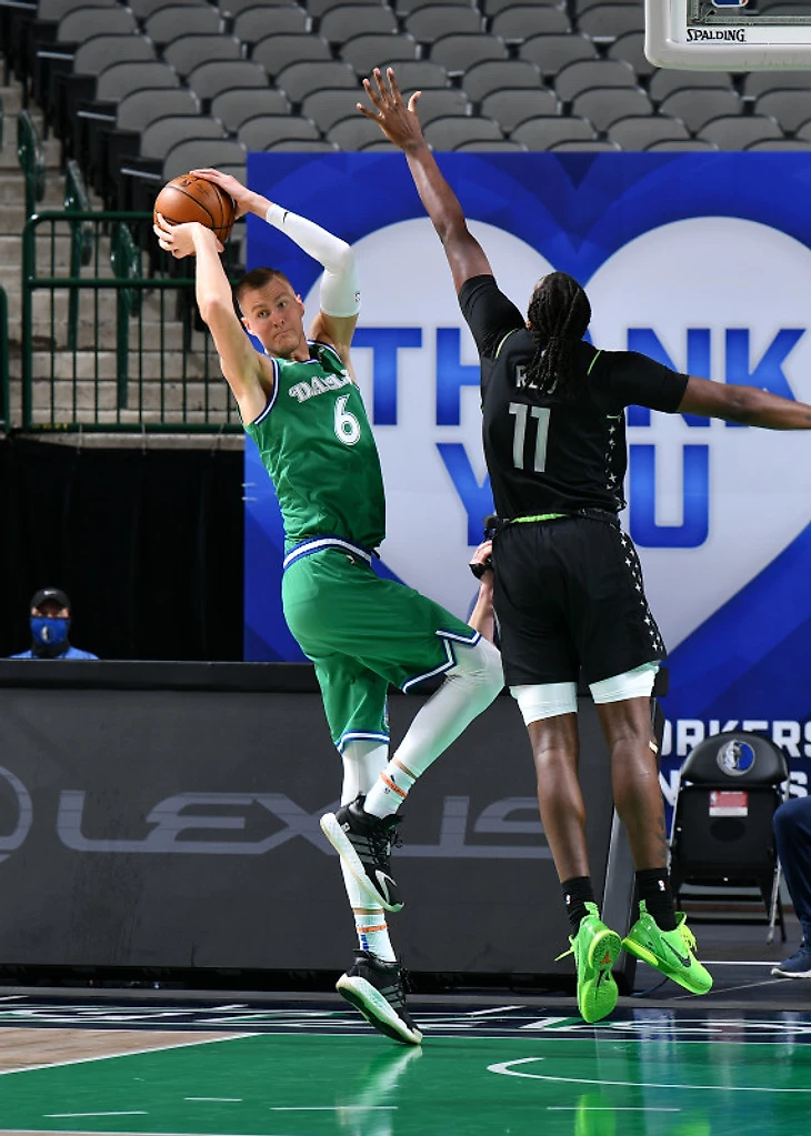 Отличная игра Порзингиса 27+13+6 блоков, приносит победу Далласу, у Бертанса 12 очков в победе, Куруц без очков
