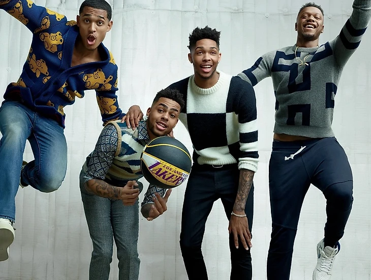 В кадре также фаворит гонки за Лучшего шестого игрока текущего сезона Джордан Кларксон – вместе с Д’Анджело Расселлом (МВЗ-2019 в составе «Бруклина»), Брэндоном Ингрэмом (МВЗ-2020 в составе «Нового Орлеана») и Рэндлом (МВЗ-2021 в составе «Нью-Йорка»).