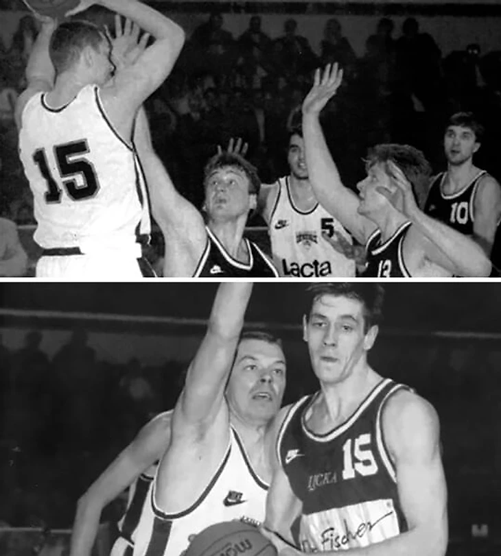 В сезоне-94/95 ЦСКА не только вернулся в групповой турнир Кубка европейских чемпионов. Сначала красно-синие поделили в группе 2-4 места со «Скаволини» и мадридским «Реалом» и вышли на один из самых богатых в тот момент клубов Европы – «Олимпиакос» с Александром Волковым, Эдди Джонсоном, Драганом Тарлачем. А потом еще и уничтожили греков в первом матче, который проходил в Москве – 95:65.