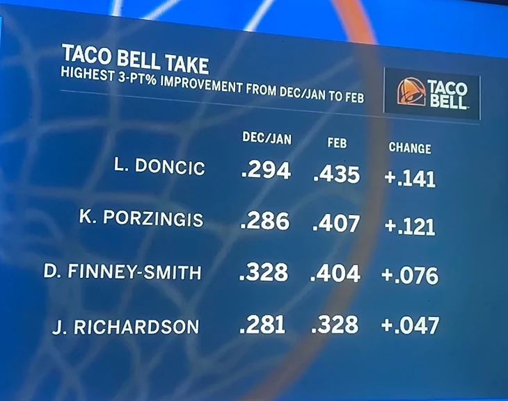 Неудивительно, что после этого в феврале по общекомандному проценту Даллас вышел на четвертое место в лиге, а проценты игроков поползли вверх.