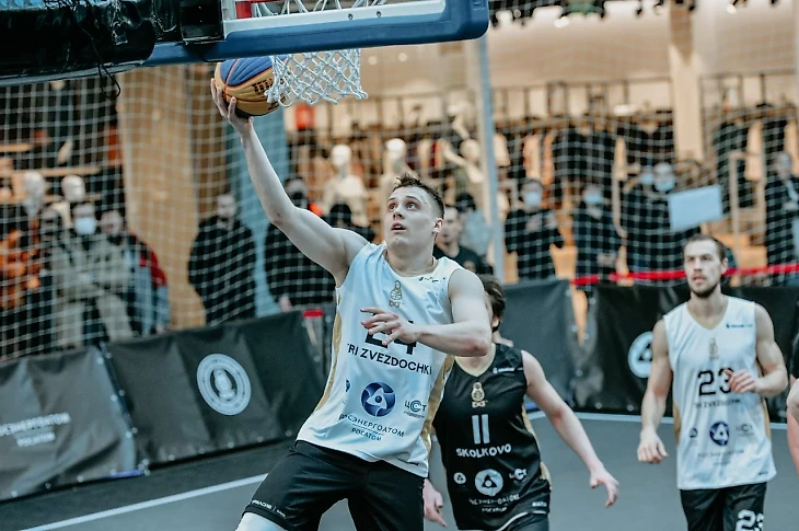 Одной из последних в бой пришлось ворваться «Риге», под руку которой попали «Три звёздочки», ранее разгромившие «Сколково»! Целых 75 секунд не могли набрать очки эти соперники. Разбудил всех Козлов фирменным средним с лицевой. Проснулись и литовцы, Артурс Стрелниекс забросил двухочковый, Миезис – штрафной. Сравнял счёт Никита Падун (3-3). Дважды точен был Чаварс в посту и в реверсе Миезиса (6-3). Козлов спокойно забросил средний и отправил команды на перерыв. Отдохнув, обменялись дальними попаданиями Ласманис и Волконский (8-6). «Рига» не только активно стала набирать очки, но и фолы. Козлов сократил отставание до минимума (8-7). Но герой Мирового тура 2020 года Наурис Миезис забросил такую же двуху, как и в финале WT (10-7). Визуально всё было под контролем у «Риги», Миезис, Ласманис и Чаварс попадали издали, а Алексиевич и Падун набирали по одному очку (17-10). Результат был предрешен, когда на табло оставалось 2 минуты. Но «Три звёздочки» после победы над «Сколково» были практически уже в плэй-офф. Да и «Рига» вряд ли готова была отдать победу во втором групповом матче. Но пока мы рассуждали о планах на завтра, Волконский вспомнил, что он сам тот еще дальнобойщик (в одном из матчей прошлого сезона он забросил 5 двушек), и довел счет до 17-16. После долгого перерыва у Латвии забил Ласманис крюком в высоком прыжке. В ответ свою неточную трёху поправил Волконский (18-17), но это были последние очки москвичей. Финальная сирена зафиксировала счет 19-17 в пользу «Риги». Посмотрим, удастся ли «Сколково» навязать борьбу таким нестабильным рижанам на старте сезона. Самыми результативными игроками этого матча стали Агнис Чаварс и Денис Волконский (по 7 очков).