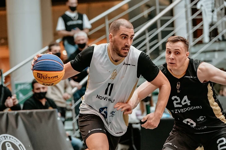 Полуфиналы  Три звёздочки – Team LT  За первые две минуты игры с Литвой «Три звёздочки» смогли набрать только 1 очко, но целых 4 фола! Еще полторы минуты и еще 2 фола, а счет 3-2 в пользу россиян. Но ранние замечания не расстроили «звёздочек», и Никита Падун набрал 4 очка подряд (7-3). Козлов сбросил ворвавшемуся под кольцо Алексиевичу, а затем после хорошей защиты и сам довел дело до набранных очков (9-3). Снова Никита в ответ на успехи Скучаса (10-5). Литовцы одарили игроков Московской команды несколькими жёсткими ударами, навязывая борьбу. И им это удалось, Витаутас Шульскис забил 1+1+1 (10-8), сказались ранние фолы «Т.З.». Два штрафных от Козлова и блокшот (12-8)! Обмен атаками Скучаса и Падуна (13-9). А вот и 7-й фол Литвы. Точны со штрафной Волконский и Падун (16-10). А герой матча с «Новым Садом» добавил еще и двуху (18-10), никогда «Три звёздочки» не были так близко к финалу тура Единой Лиги Европы 3х3. Но у литовцев оставалось еще 4 с половиной минуты в запасе. Только Козлова это не волновало, никто не хотел фолить на нём (20-12). А определил первого финалиста Павел Алексиевич, объехав всю литовскую команду (21-14). У Никиты Падуна 8 очков в этой игре. А Денис Волконский сравнялся с Ласманисом и Воорном по количеству двухочковых попаданий за тур (8).