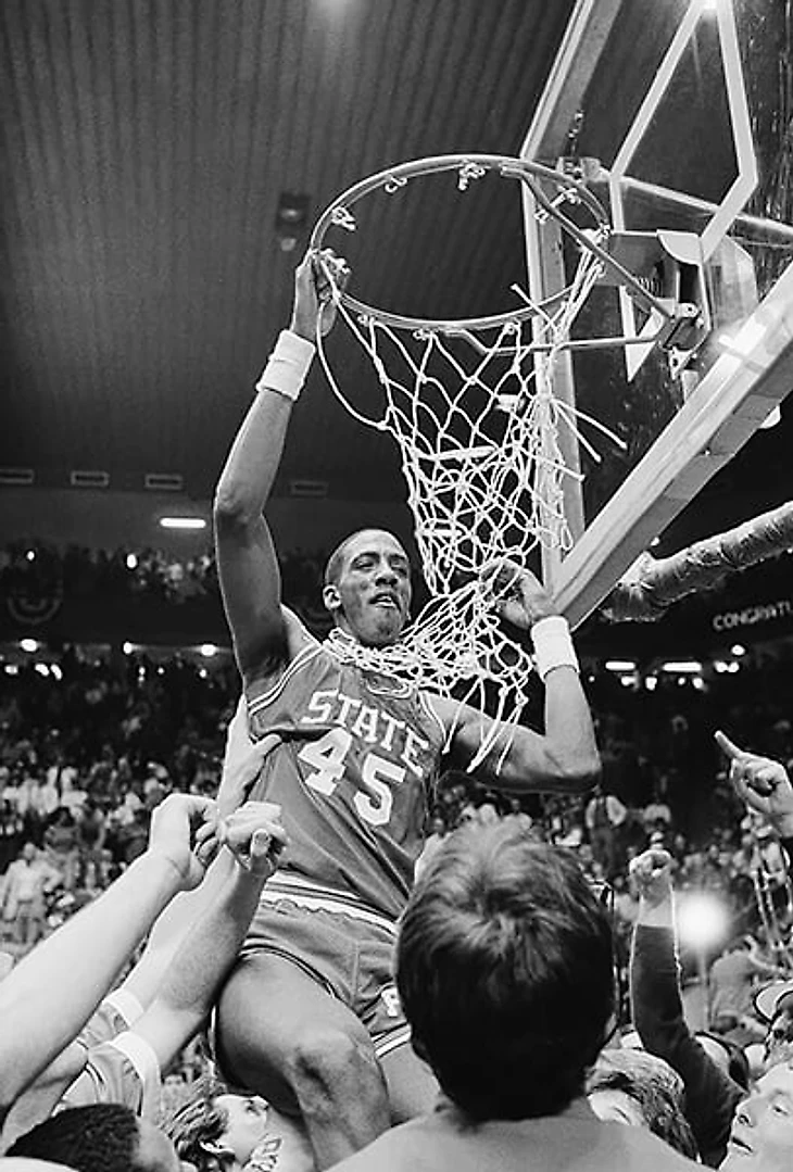 Первая – финал NCAA 1983 года, когда ведомая Джимми Ви команда Университета штата Северной Каролины обыграла лидеров первенства из Университета Хьюстона с Клайдом Дрекслером и тогда еще Акимом Оладжувоном.