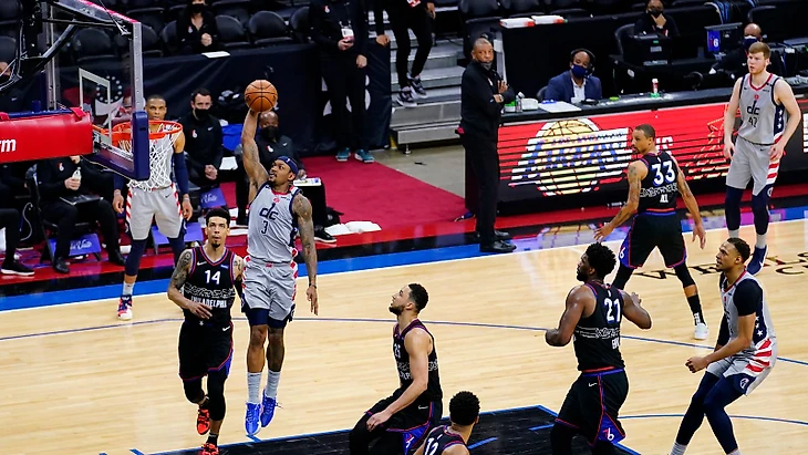 Объективно у Эмбиида - эталонная работа ног и вполне сносная игра при двойной опеке. Исполнителей, хотя бы защитных, которые могут это ограничить - у «Визардс» нету. Что можно придумать ещё? Стягивать игрока только с Симмонса, перекрывая линию передач на Бена, но и это не работает - у «Визардс» нет игроков, которые хорошо читают линии передач при схожих габаритах.