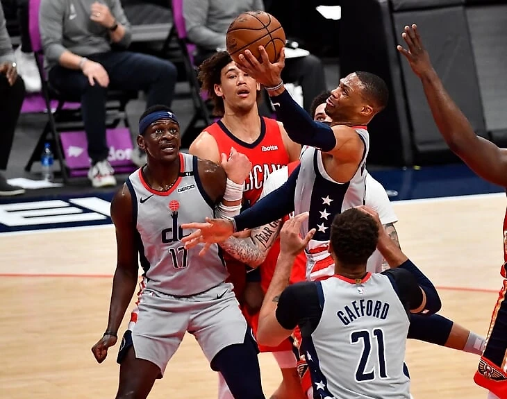 Он даже попадает 39,1% трехочковых в клатче и практически достиг приемлемой точности штрафных бросков (78,3%). С Расселом «Уизардс» победили в 14 из 28 встреч, решавшихся в заключительные минуты, и это является очень неплохим результатом для коллектива с отрицательным балансом побед и поражений.