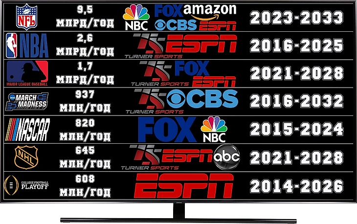 Последние на данный момент заключенные телеконтракты ведущих лиг США