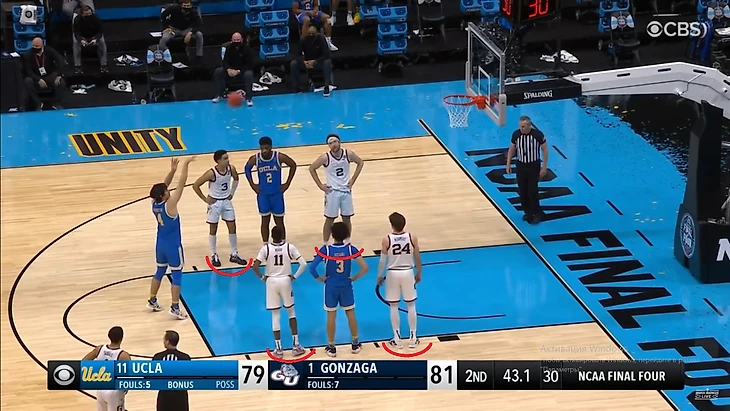 Трёхочковая линия в мужском баскетболе NCAA была установлена на отметке 19,9 футов (6,06 м) в 1987-2009 гг.; 20,9 футов (6,37 м) в 2009-2019 гг.; 22,175 фута (6,75 м) с 2019 года. При этом расстояние от угла – 21,787 фута (6,64 м). Для сравнения – в НБА до кольца 23,9 фута (7,3 м) от любой точки на линии.