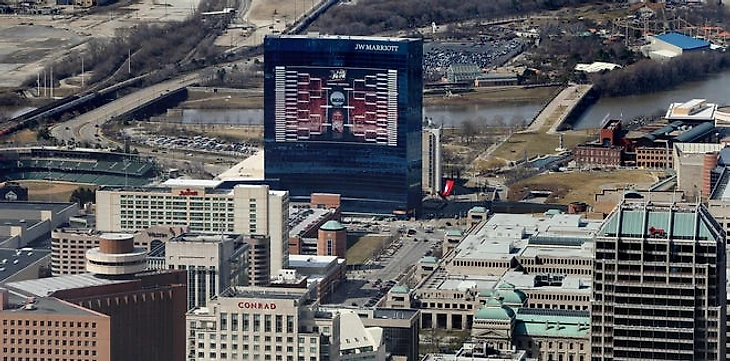 Наклейка площадью более 4,5 тыс. м2 с таблицей плей-офф традиционно располагается на отеле «Мэрриот», недалеко от штаб-квартиры NCAA в Индианаполисе.
