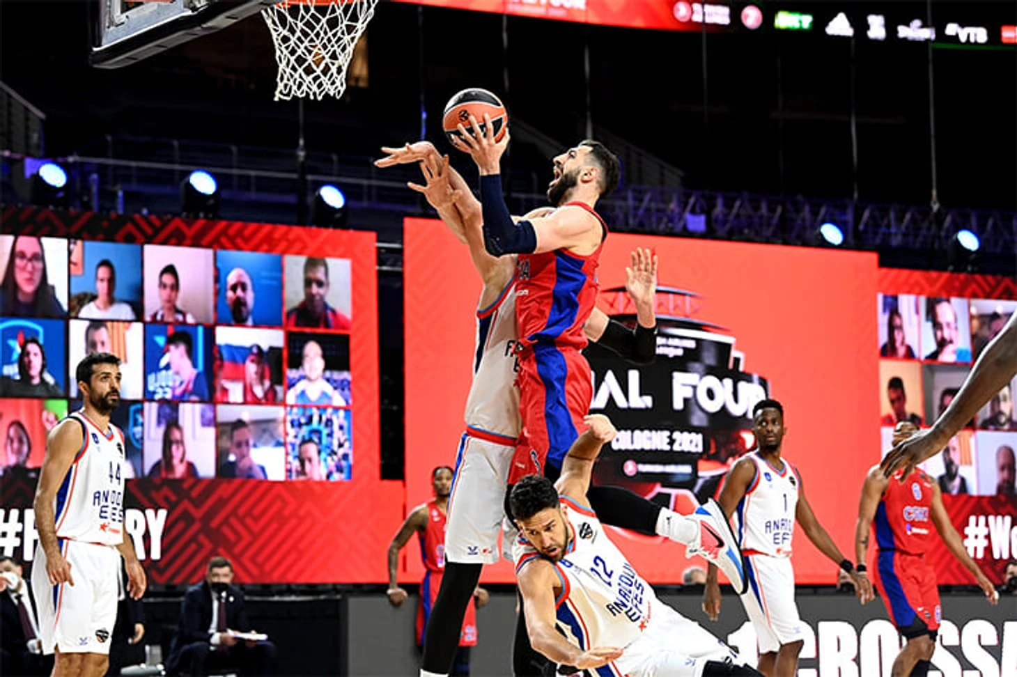 Ураганная сила пик-н-ролла Симона и Шанлы, Мицича и кого угодно разметала всю армейскую защиту. В первой половине «Эфес» набрал 49 очков и выдавал безупречную атакующую игру: 7 из 12 попаданий из-за дуги, много легких очков от центрового внутри, возмутительно открытые попытки от снайперов, доминирование Мицича, старавшегося утвердиться в качестве лучшего представителя Евролиги… ЦСКА менялся на маленьких, но не успевал страховать, давал оппонентам слишком много свободы, растерялся под адской бомбежкой.