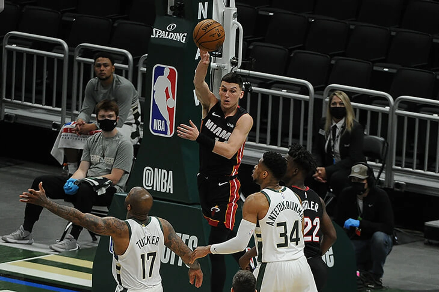 Когда игроки «Бакс» совершали двухочковые через бигмена «Хит», они попадали лучше обычного. Единственная зона, где 206-сантиметровый «большой» статистически заметно снизил точность оппонентов, находится за пределами дуги. Но за это он должен сказать спасибо Яннису, который в привычном стиле промахивался из открытых позиций.