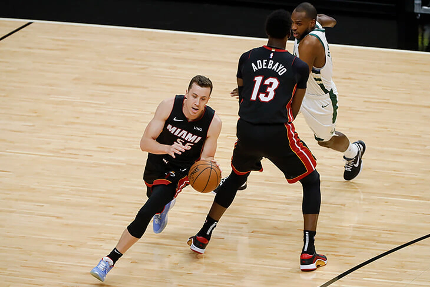 Оборона в качестве единственного «большого». Центр «Майами» равное количество времени защищался как против Адетокумбо, так и против Лопеса. Он отлично сопротивлялся броскам грека и после первой встречи вынудил его больше играть на партнеров. Однако все, что касается противостояния с Бруком – это полный провал. Бэм дал оппоненту реализовать 57,1% двухочковых и позволил собрать больше подборов в нападении, чем в регулярном сезоне. Помощи Тревора Аризы, очевидно, оказалось недостаточно, а Адебайо просто не вынес такой объем нагрузки.