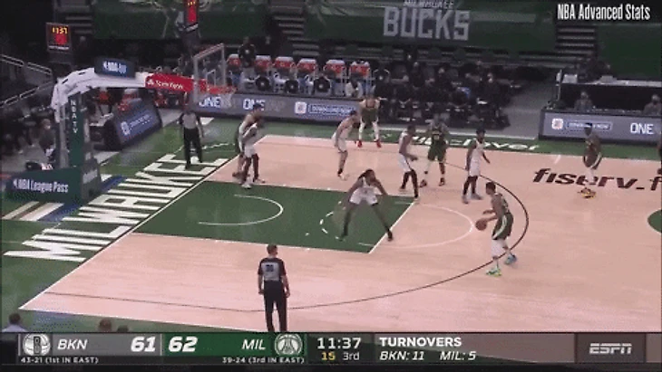 • Вернемся к вопросу изоляций. «Нетс» на втором месте в лиге по их количеству, «Бакс» на третьем, имея даже немного выше проценты. В любом сочетании «Нетс» на площадке всегда будет 2, а чаще и 3 игрока, которые не смогут полноценно защищаться против игроков «Бакс». Это просто надо принять