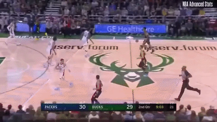 Кроме того, «Нетс» нельзя бросать Янниса настолько сильно на дуге, против «Бруклина» он бросил из-за дуги 38% на 26 попыток – это очень неплохо: