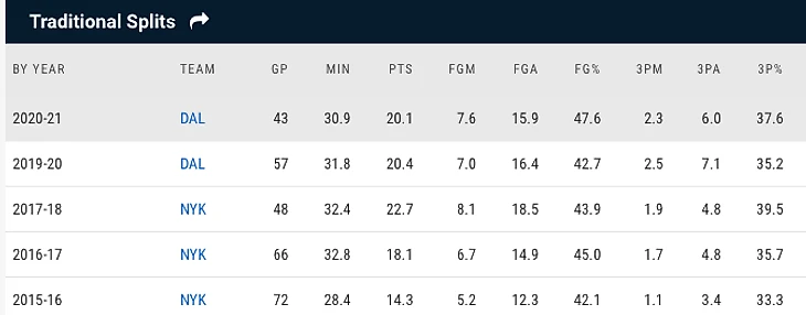 Действительно, бросок Порзингиса всегда был его главным оружием, посмотрим цифры о его трехочковых бросках в регулярке: