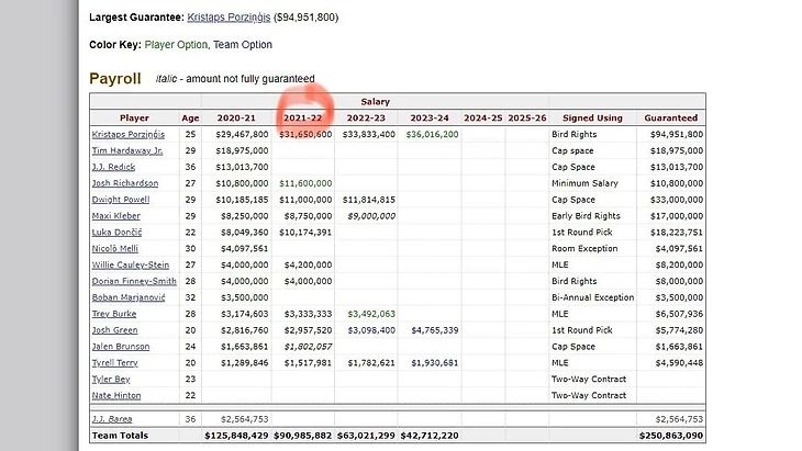 1) Даллас не меняет Порзингиса до начала сезона, переподписывают Хардуэя с зп в районе 15 миллионов, Ричардсон берет опцию на 11 миллионов, что дальше ?