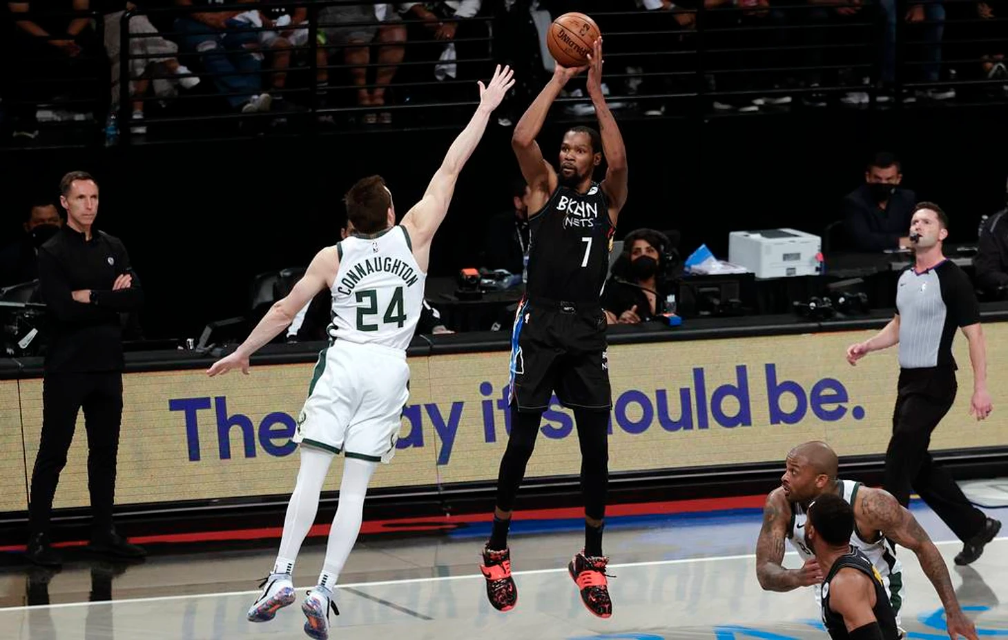 После двух поражений на выезде «Бруклин» приехал домой, чтобы на родном паркете одолеть «Бакс». Незадолго до начала игры - появилась информация, что Харден будет играть. Очень спорное решение от Стива Нэша. С первых минут было видно, что все произошедшее сильно ударило по психологии игроков. Огромное количество выброшенных мимо бросков, неточных передач, ошибочных действий в атаке. Харден определенно не был готов: в первой половине он смазал все, что возможно, не шел в контакт, а старался отдавать передачи, что у него тоже получалось скверно. Не выделялся среди всех и будущий герой встречи Кевин Дюрэнт, против которого так же неплохо защищался Такер. Но вот во второй половине, что-то поменялось. Харден даже смог попасть с игры. В третьей четверти по-настоящему включился Дюрэнт и отрыв «Милуоки» стал таять на глазах. А в четвертой КД и вовсе вывел «Бруклин» вперед. Он как будто хотел доказать всем и в первую очередь самому себе, что он способен тащить в одиночку команду, что он не хуже Леброна. В итоге Кевин Дюрэнт стал самым результативным игроком матча против «Милуоки Бакс» и довести все до победы. Он оформил трипл-дабл – 49 очков, 17 подборов и 10 передач. И установил рекорд лиги. Ранее ни одному баскетболисту в истории не удавалось набрать 45+ очков, 15+ подборов и 10+ передач в матче плей-офф. Сложно сказать, правильно ли сделал Нэш, выпустив Хардена (не усугубил ли тот травму - отбегав 45+ минут). Какой ценой досталась эта победа? Слабо верится, что КД еще раз совершит нечто подобное. Даже проигрывая в серии «Бакс» по-прежнему являются фаворитами.