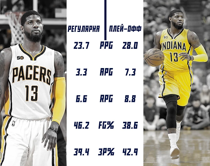 - В третьей и четвертой играх Джордж чувствовал себя уверенно, забив 23 и 32 очка соответственно, однако усилий форварда для побед в обоих поединках не хватило.