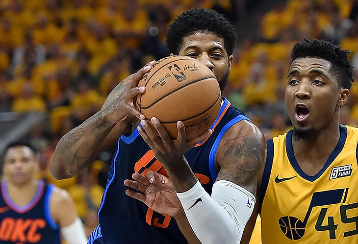 - Пятая игра осталась за баскетболистами «Тандер». Джордж выложился на полную и собрал коллекцию из 34 очков, 8 подборов, 2 ассистов, 2 перехватов и 1 блок-шота.