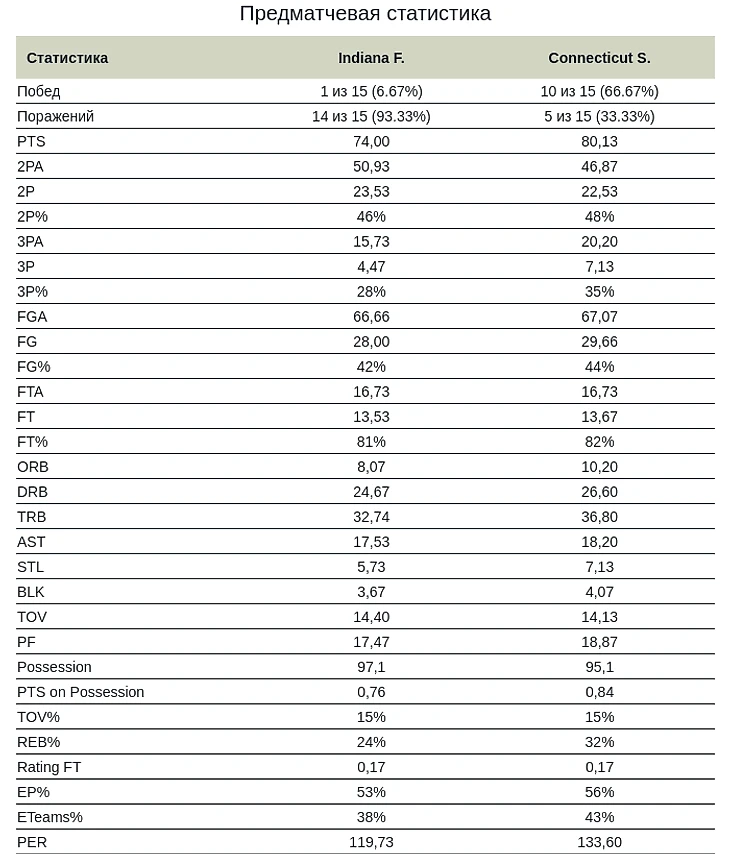 Прогноз 154.5 ТБ за 1.85 или же победа Коннектикут за 1.1.