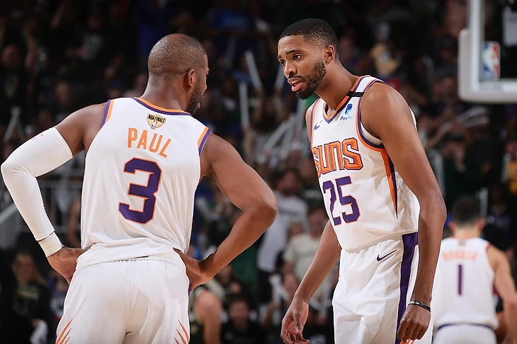 Хрусталев: я уверен, что главные игроки серии, причем с большим запасом, это Яннис и Эйтон. Такое мое мнение подтверждается визуально, но и статистика говорит примерно о том же. Когда на площадке есть Яннис, но нет Эйтона, net rating у «Милуоки» +38.5; когда есть Эйтон, но нет Янниса, net rating у «Финикса» +43.9. Когда оба на площадке, net rating у «Финикса» +0.2, то есть, по сути полное равенство. Важность этих игроков для своих команд особенно показала третья четверть последнего матча, когда Эйтон почти сразу после начала третьей четверти сел на скамейку с четырьмя фолами, и остаток четверти «Финикс» играл легкой пятеркой с поздним внедрением Фрэнка Камински. Поначалу все было вроде бы неплохо, но к концу четверти стало как раз совсем плохо, и матч был проигран именно тогда. Эйтон ведь еще и единственный игрок «Финикса», у которого почти нет неудачных матчей, тогда как что у Букера, что у Пола провалов хватает.