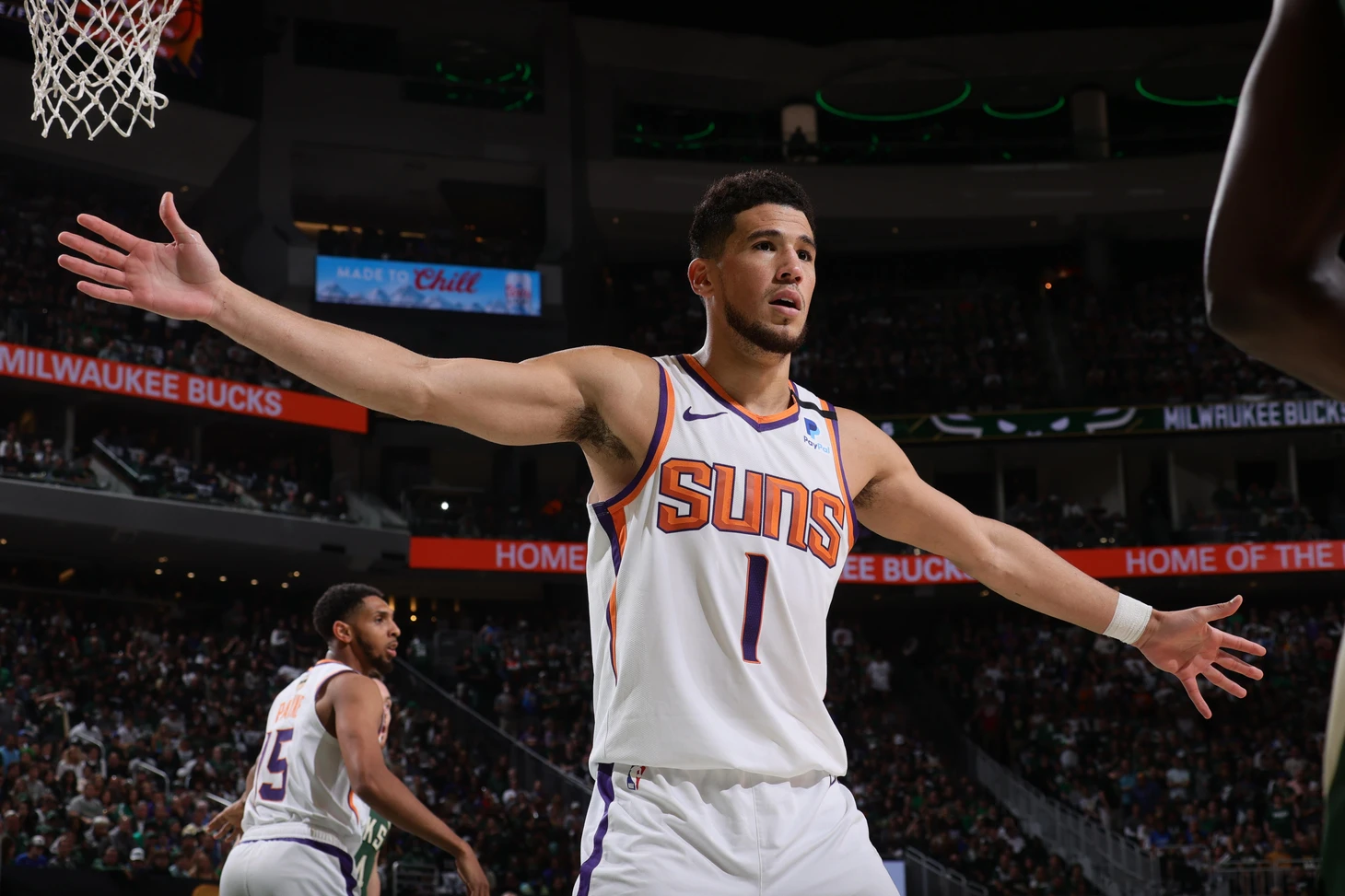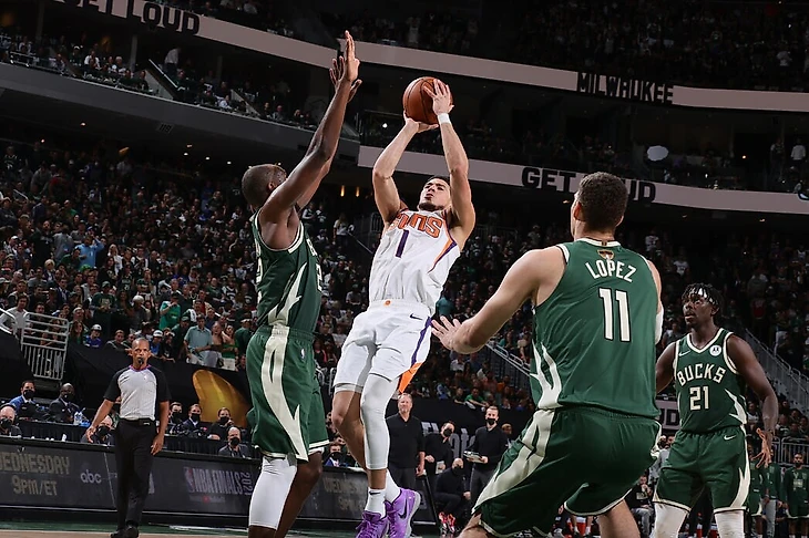 Что ты думаешь об игре Букера в этом плей-офф, и в чем причина такого его неудачного выступления в третьем матче. Может, дело не столько в нем, сколько в защите «Милуоки»?