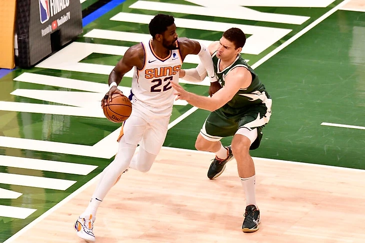 Впечатления от игры Букера в этом плей-офф очень неоднозначные. Он не провалился в целом, но у него хватает отдельных провальных матчей, и я не знаю теперь, как его оценивать в смысле места среди других звезд НБА. С «Лейкерс» можно вспомнить отличные первый и шестой матч, с «Клипперс» шикарный первый, но потом травма, с «Милуоки» очень хорошие первые две игры. Остальное все можно ставить под сомнение.