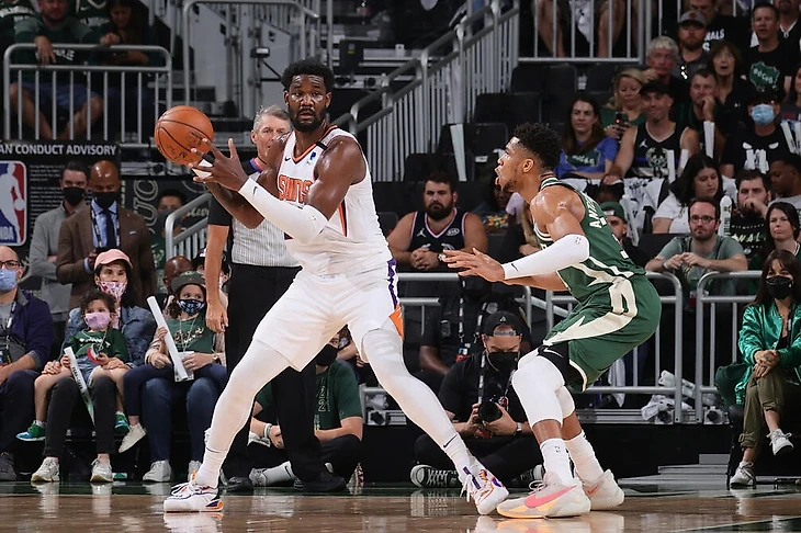 Хрусталев: у меня, как у болельщика «Финикса», есть опасения по поводу того, что Эйтон будет чаще, чем Яннис, рисковать получить перебор фолов. Это логично, потому что трудно играть совсем без фолов, когда в тебя постоянно несется скоростной поезд Адетокумбо. В самого же Адетокумбо никто так не несется, поэтому и фолов у него будет меньше.