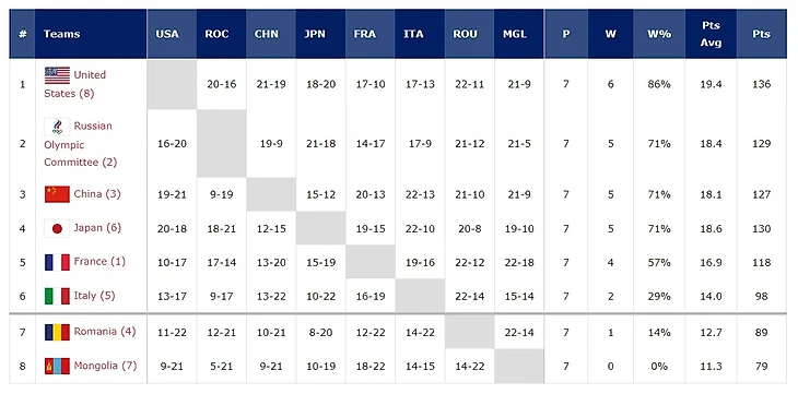 Настоящий перфоманс выдала команда России. Проиграв лишь Франции и США, россиянки просто смели все остальные команды с площадки. С пятью победами и по личным встречам они оказались на втором месте и автоматически прошли в полуфинал Олимпиады.