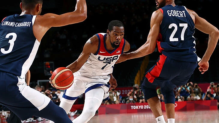 Защитная пятерка: Матис Тайбул (Австралия), Дрю Холидэй (США), Николя Батюм (Франция), Кевин Дюрант (США), Руди Гобер (Франция).