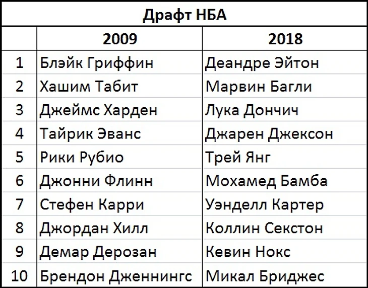 Вы замечали схожесть драфтов 2009 и 2018 годов? Конечно, еще пока рано говорить про достижения игроков, пришедших в НБА три года назад, но уже сейчас понятно, что тот драфт был очень сильным и баскетболисты, выбранные на нем, будут иметь огромное влияние на лигу в будущем.