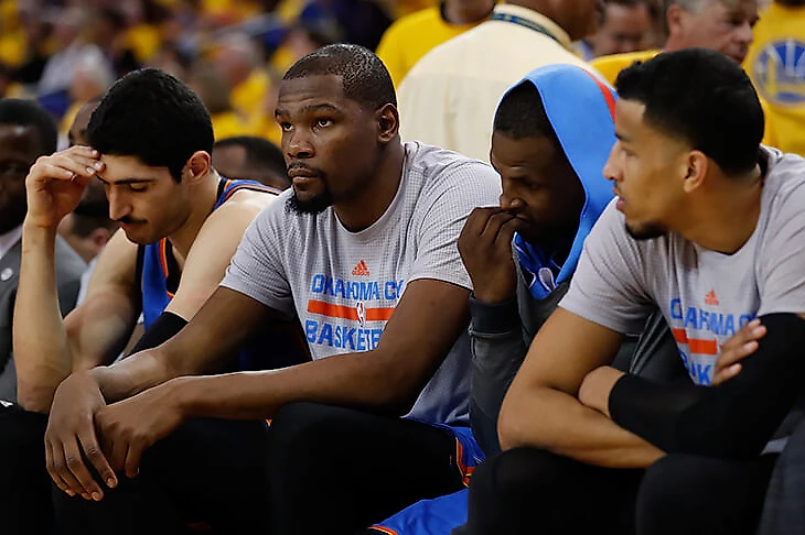 В 2016 году лидер «Оклахомы» Кевин Дюрэнт скандально перешел в «Голден Стэйт» – клуб, который совсем недавно установил рекорд по победам в регулярном сезоне и отыгрался со счета 1-3 в финале Западной конференции как раз против «Тандер». За три сезона в команде Карри, Томпсона и Грина суперзвездный форвард успел завоевать два чемпионства, получил травму, оставившую его без баскетбола на год, принял участие в одном из самых громких скандалов НБА между одноклубниками и ушел из команды.