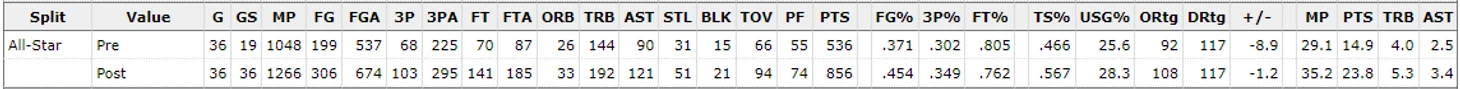 Ваш игрок в первый сезон на дистанции половины игр регулярки показывает TS% на уровне Тейтума, Митчелла и Миддлтона – за половину сезона Финч нашел идеальную роль для Эдвардса, перестал его ломать и поместил в условия, в которых он уже показывает уровень звезды.