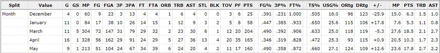 Во-первых, количество его catch and shoot бросков из-за дуги несравнимо даже с последним сезоном Клэя (3,7 против 6,1, у Пула – 3,9). Во-вторых, Уиггинс в 31,5% бросает в движении пулл-апы и реализует лишь 38,7% этих бросков, очень плохие цифры.