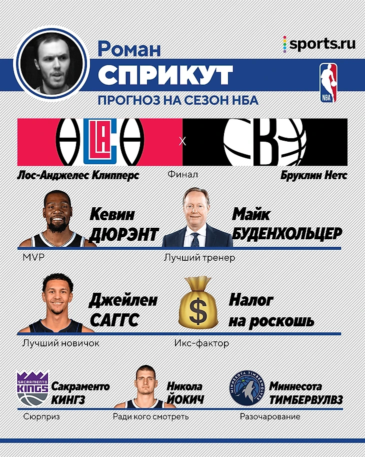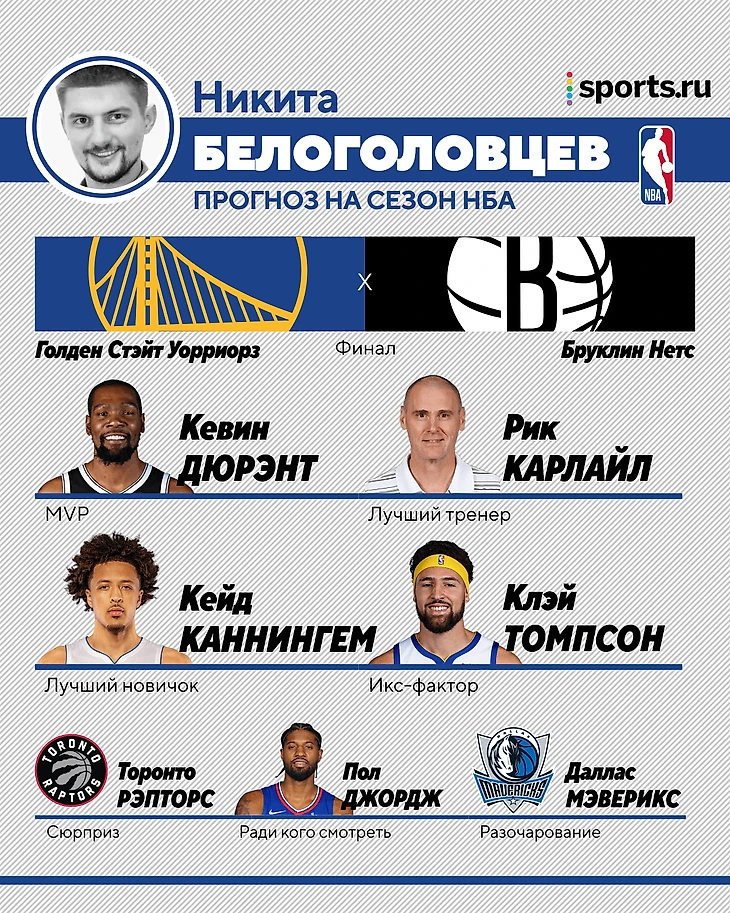 С тем, что Нетс - главные фавориты сезона, согласны пожалуй все. А вот по МВП есть вопросы. По Дончичу - не уверен в том, что результаты команды улучшатся, а его стата останется даже на таком же уровне. Кидд сейчас активно наигрывает составы с КП на 4, пространства под кольцом будет меньше, и это вкупе с изменениями в судействе осложнит процесс набора очков для Луки. Да и вообще Кидд не хочет, чтобы все двигалось через одного человека (правда пока непонятно, как это сделать с тем составом, что есть у Далласа).