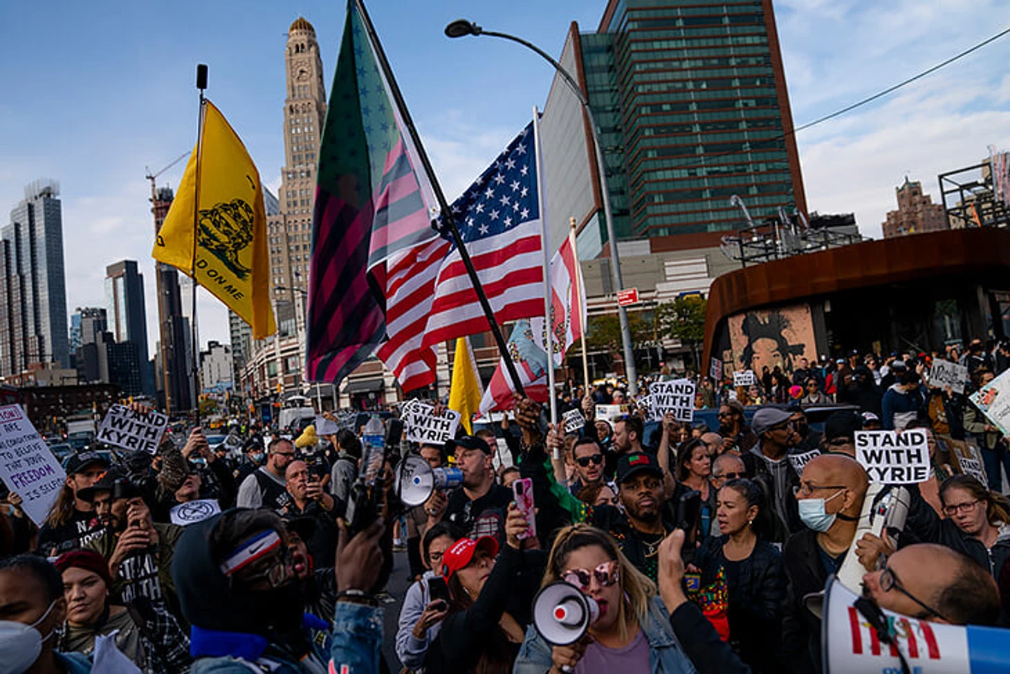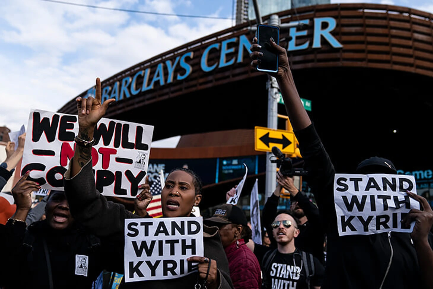 Вечером вблизи домашней арены «Нетс» прошла акция протеста, участники которой призывали к двум вещам: во-первых, отказаться от обязательной для работы вакцинации («no vaccine mandate»), и, во-вторых, позволить Кайри выступать за «Бруклин» («let Kyrie play»).