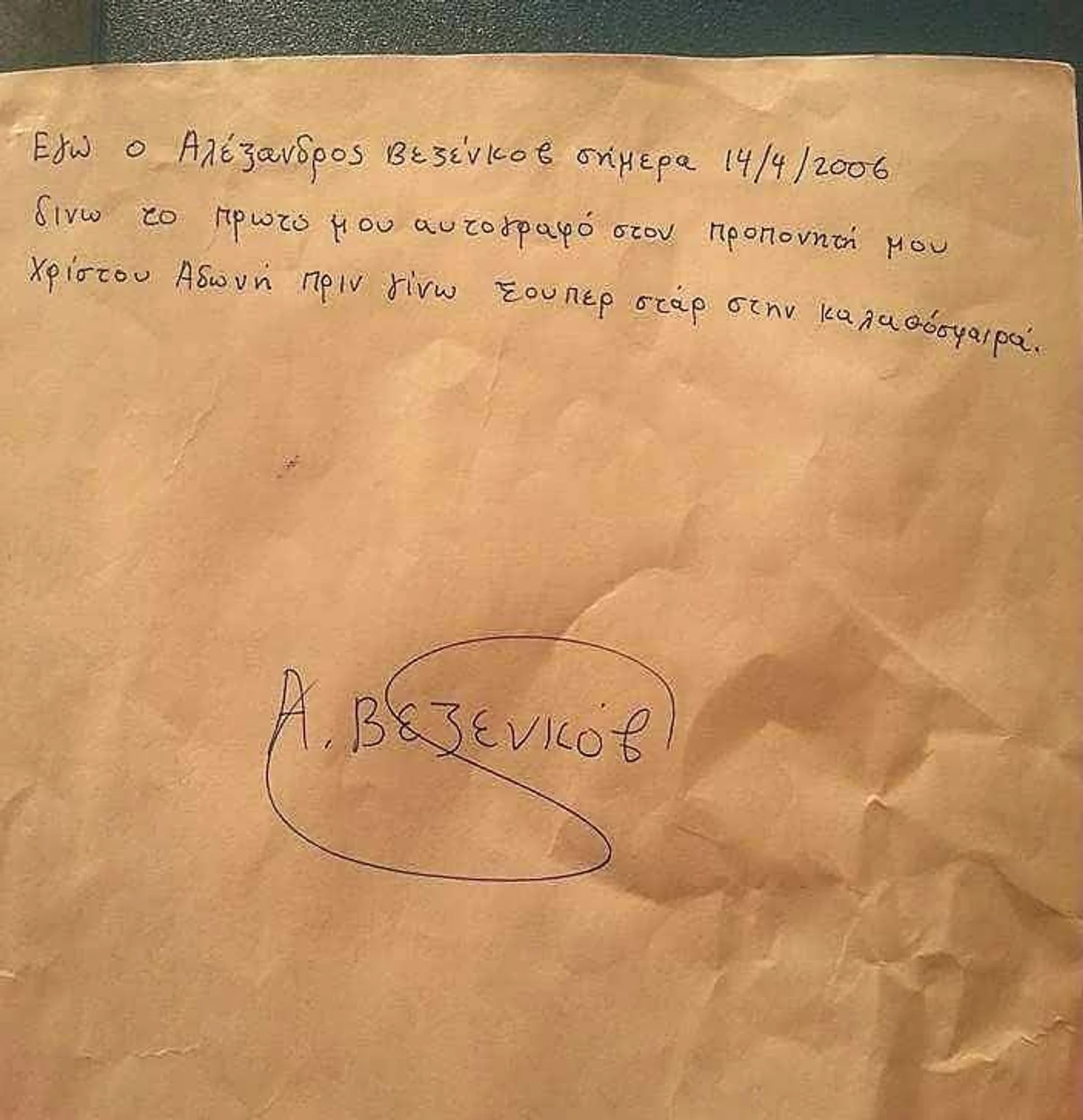 С огромной уверенностью можно утверждать, что где бы не играл главный космополит Евролиги, он будет доказывать на деле то, что написал в своём первом в жизни автографе, который дал своему первому тренеру Адонису Христо. Везенков тогда написал практически клятву: “Я, Александр Везенков, даю свой первый автограф 14 апреля 2006 года своему первому тренеру Адонису Христо и обязуюсь однажды стать суперзвездой мирового уровня”.