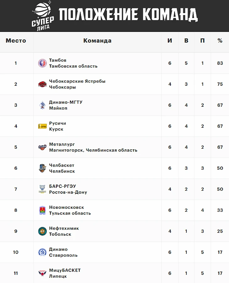 Безусловным лидером по итогам октября стал «Тамбов»: «волки» начали сезон с 5-ти побед в 6-ти поединках, допустив единственную осечку в Курске.