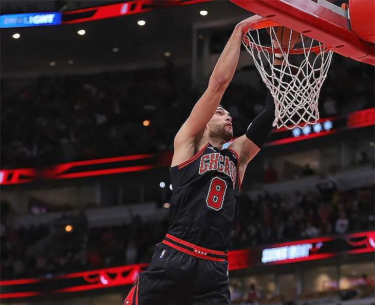 Как, например, этот от «Чикаго». Весь «Даллас» остановился в ожидании свистка арбитра, игра – нет, лежащий на паркете Карузо откинул мяч Лонзо, тот через всю площадку перевел на Зака Лавина (еще один привет «Миннесоте»!) – а дальше смотрите сами:
