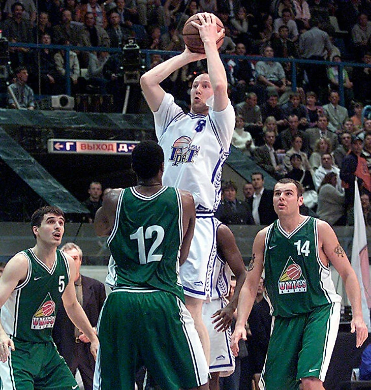 — Да, та игра в Перми, наверное, самое сильное воспоминание, — соглашается Чикалкин. — «Урал-Грейт» выиграл свой первый серьезный титул, причем, на международном уровне, а я в том матче с «Жальгирисом» едва не набрал 40 очков. Что я кушал накануне?! Честно говоря, не знаю, что тогда со мной произошло — просто не мог промахнуться. Хочу найти запись игры, внимательно пересмотреть. Был момент где-то за минуту до конца, когда я забил трехочковый метров с восьми-девяти. Атака только началась, но меня почему-то переклинило — решил, что заканчивается время на владение. Я потерялся в пространстве, прыгнул вперед, не успев осознать, как далеко от кольца нахожусь, и — бросил. Но, видимо, кураж уже был такой, что и этот мяч залетел!