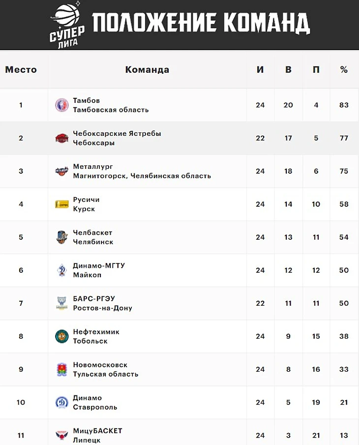 В нынешнем сезоне точно не стоит ожидать раннего определения участников постсезона. В зоне борьбы за плей-офф максимально плотно расположились сразу четыре коллектива: «Русичи», «Челбаскет», «Динамо-МГТУ» и «БАРС-РГЭУ». Также не стоит сбрасывать со счетов «Нефтехимик» и «Новомосковск», которые немного отстают от четверки середняков, но вполне могут догнать соседей по таблице во второй половине регулярки. Все только начинается!