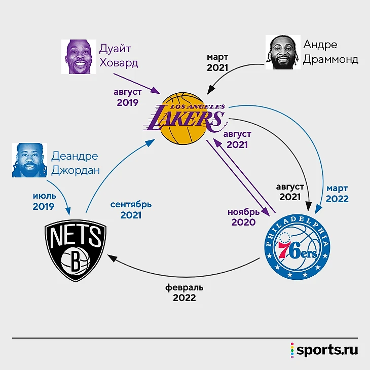 «Лейкерс», «Нетс» и «Сиксерс» по кругу меняют одних и тех же центровых: Ховарда, Джордана, Драммонда. Это не помогает