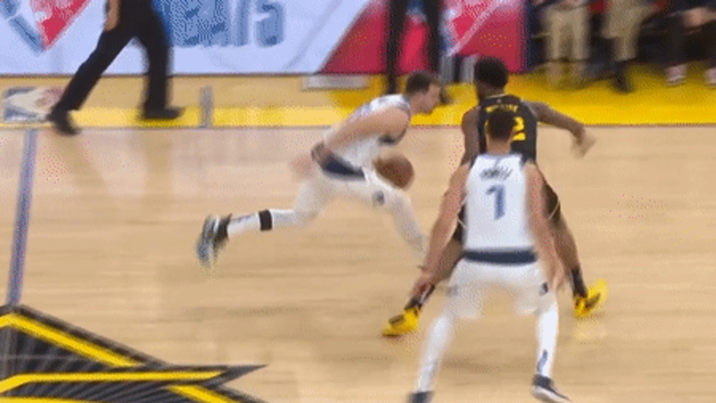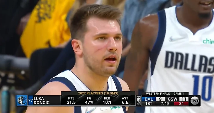 В одной из первых атак первого матча финала Запада словенец пытался обыграть форварда «Уорриорз» Эндрю Уиггинса, но получивший персональное задание в обороне Эндрю решил: если уж держать плотную опеку, то держать ее до конца. Даже если рука почему-то тянется к щеке соперника, а не к мячу. В итоге после такой пощечины весь матч Дончич играл с внушительной царапиной под глазом.