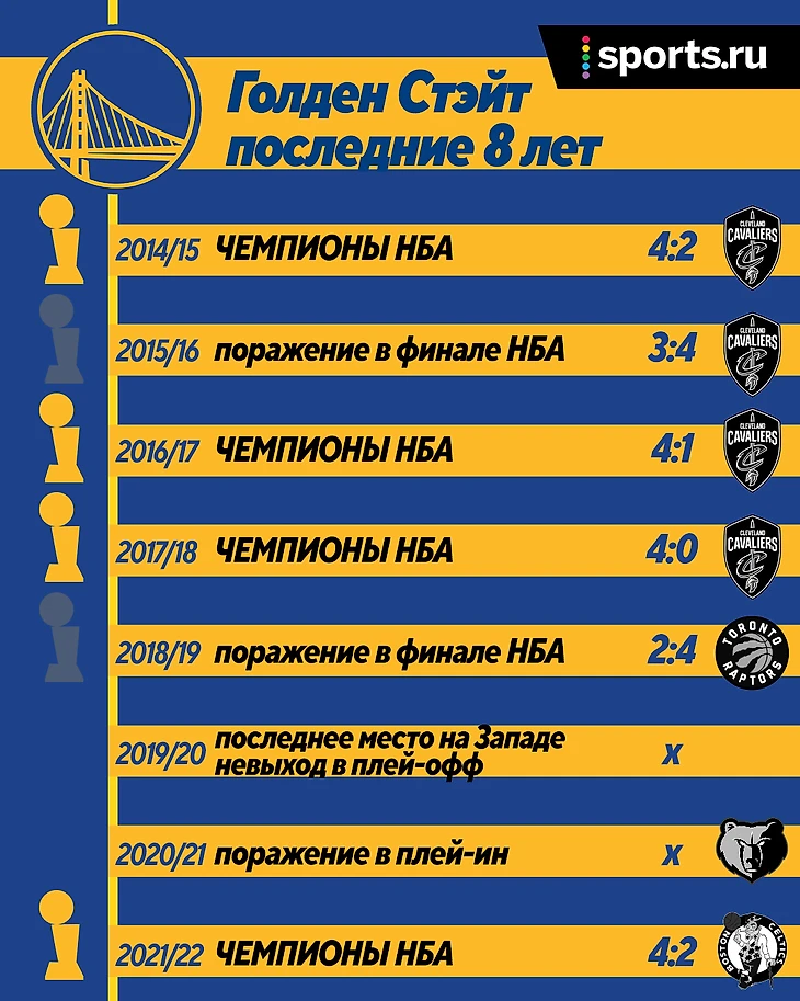 Как и успех «Уорриорз», которые упали в самую грязь НБА, но гордо поднялись и вернули трон.