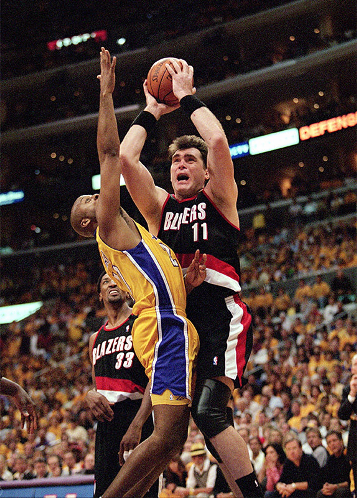 Пик (и одновременно лебединая песня) «Портленда» Майка Данливи настал через год — в легендарном походе-2000. Боб Уитситт решил сыграть олл-ин: в дополнение к уже и без того сильному составу он подписал престарелого, но еще актуального Детлефа Шремпфа, снайпера Стива Смита из «Атланты» и, конечно же, Скотти Пиппена, который рвался доказать, что какой-то там Джордан в «Чикаго» только мешал его НАСЛЕДИЮ. «Блэйзерс» легко проскочили регулярку, одержав 59 побед, в плей-офф играючи разобрались с «Миннесотой» и «Ютой», а затем схватились с «Лейкерс», горя желанием отомстить наконец за многократные оскорбления чести и достоинства.