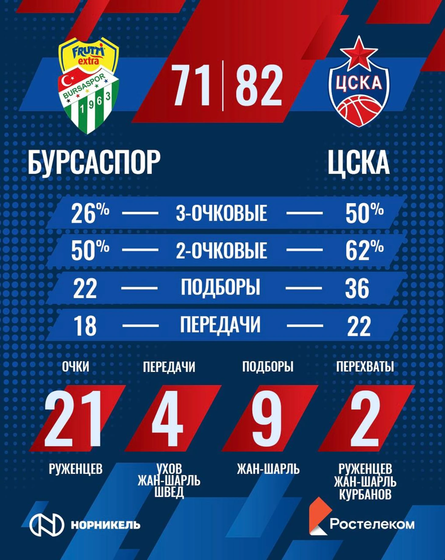 Хоть армейцы и вели в счете почти весь матч, все таки у команды Райковича возникли трудности с турецкой командой в начале 2 четверти, и они пропустили рывок "Бурсаспора" 0:8 ,но вскоре вернулись в игру и ответили своими двумя трехочковыми подряд.