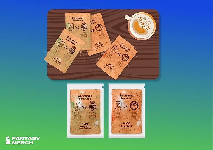 На форме также уделено внимание деталям: на «холодном стекле» паттерн из капелек, а на «этикетке» с названием клуба ветки солода дополняют мячи. На поясе шорт расположилась крышка от пивной бутылки с логотипом спонсора. Мерч 1: Программки-снеки Поддерживаем пивную концепцию съедобными программками на матч. На хлебцах печатаем пищевым принтером или выжигаем лазером: дату, время матча, логотипы команд и составы. Каждому сопернику можно задать свой вкус и специи. Ведь матч с Реалом будет наверняка «острее» чем с Олимпиакосом. Ознакомился с составами, отпил, закусил программкой. Профит!