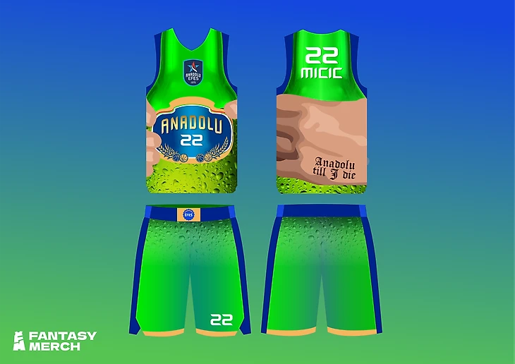 От редакции: Вы находитесь в блоге «А что если?». Здесь придумывают необычный мерч баскетбольных команд, основываясь на их истории. Для этого мы берём интересные факты из ДНК клубов, разрабатываем концепцию третьего комплекта формы и двух предметов мерча. Мы уже фантазировали про клубы Единой Лиги и НБА, теперь возьмёмся за сильнейший клуб Европы — Анадолу Эфес. Команда из Стамбула два года подряд выигрывает Евролигу и совсем недавно выиграла суперкубок Турции. История и концепция Клуб был основан в 1976 году и один из самых интересных фактов в его истории это спонсор. С первых дней им стал пивной бренд «Эфес Пилсен», дочернее предприятие концерна Анадолу Групп. До 2011 года команда так и называлась «Эфес Пилсен», пока алкогольные и табачные бренды не запретили использовать в названиях спортивных организаций. Очевидно, что и сегодня клуб ассоциируется с пивом, несмотря на косметическую смену названия. Поэтому и концепт у нас будет — пивной. Форма Зелёная бутылка Эфеса с синей этикеткой — один из самых узнаваемых пивных брендов, по крайней мере в Европе. Поэтому за основу в дизайне формы и возьмём этот узнаваемый образ.