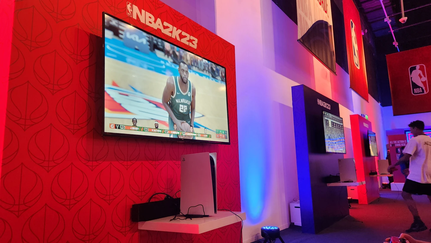 Внутри – несколько залов с зонами от разных спонсоров и самой НБА. Кроме чисто спонсорских активаций с шансами выиграть кроссовки (трудно и рандом) или бутылочку с рюкзаком от Gatorade (попроще, нужно попасть мини-мячиком в мини-кольцо) самые востребованные: