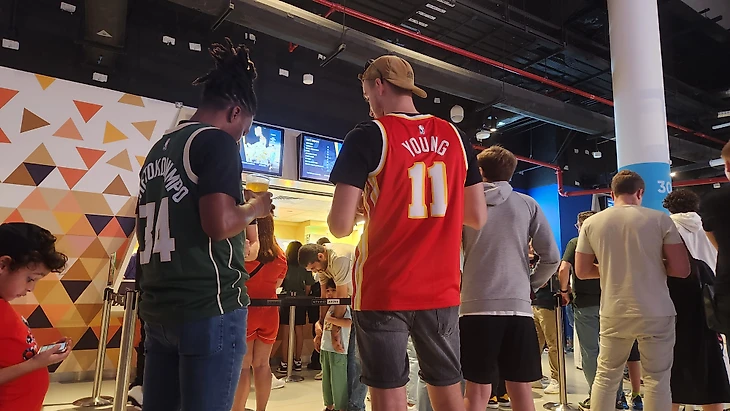 Правда, на самой арене не так уж много развлечений, главный способ провести время – снова очереди, только уже за едой или к небольшому прилавку магазина НБА.