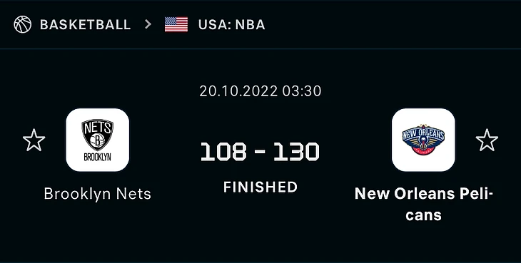 — Уверенная игра от «Пеликанов» и 2-х краткое преимущество в 1 четверти, которое они пытались держать, после чего «Нетс» постарались догнать соперника и вроде у них получилось, но к этому моменту гости поймали кураж, благодаря которому у них залетало абсолютно все. По мыслям. ✅